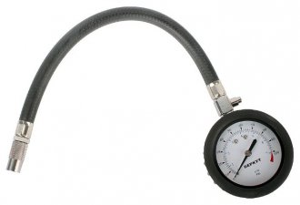 Добавив к манометру отрезок шланга и шинный наконечник, можно получить очень удобный шинный манометр.
