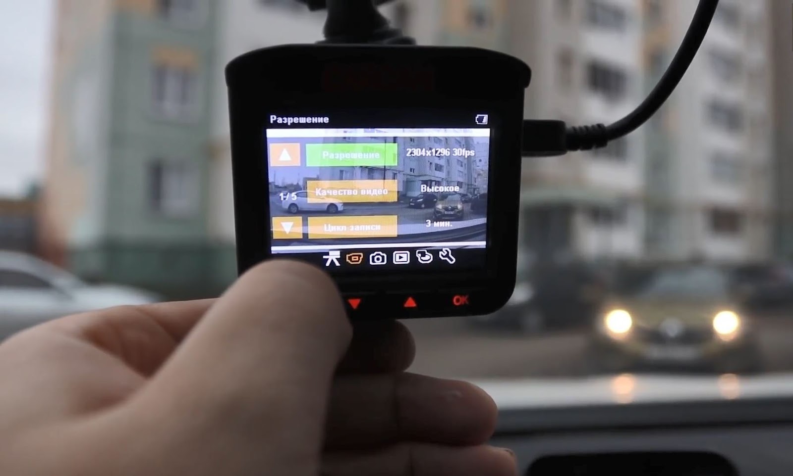 У регистратора большой удобный экран и все кнопки расположены на передней панели на одной стороне — пользоваться можно одной рукой.