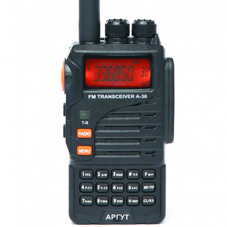 Продолжает наш ТОП — АРГУТ А-36. В эту рацию запрограммирована сетка частот речного диапазона РФ в диапазоне от 300 до 350 Мгц, что соответствует требованиям Российского речного регистра. Она примечательна большой дальностью связи на открытой местности, достигающей 14,5 километров. А в условиях плотной городской застройки дальность связи у этого устройства составляет около 4-х километров.