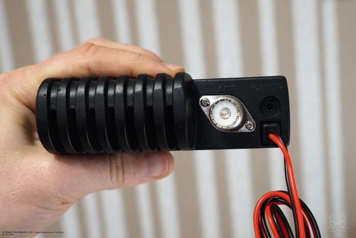 На верхней торцевой поверхности корпуса расположены: ручка включения и выключения аппарата и регулировки громкости, переключатель каналов и разъем для антенны. Тангента (клавиша перехода в режим передачи) вмонтирована в левый торец корпуса устройства. Ниже ее встроены кнопка управления шумоподавителем и клавиша сканирования. В правом торце, под съемной пластиковой крышкой «спрятаны» разъемы для подключения гарнитуры, подключения к прикуривателю, USB порт.