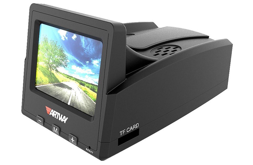 Artway MD-160 — видеорегистратор-зеркало «5 в 1″. В корпусе зеркала заднего вида заключены регистратор с двумя камерами, антирадарное устройство, GPS-модуль и фирменная система помощи при парковке от компании Artway. Максимальное разрешение видеосъемки — 1080р (Full HD 1920х1080). Благодаря остроумному инженерному решению дисплей получился чрезвычайно большим: 4,3».