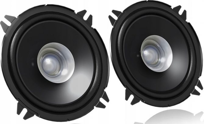 Компания «Пионер» является известным производителем автомобильных акустических систем. Модель TS-1350S имеет почти линейную АЧХ в диапазоне 45-30 000 Гц. Диффузор основного динамика сделан из многослойного композита с добавлением слюды, что позволяет ему без дребезга и вибраций воспроизводить мощность до 250 ватт. Эти 13 см динамики лучше подходят в двери, причём автолюбители легко делают это самостоятельно.