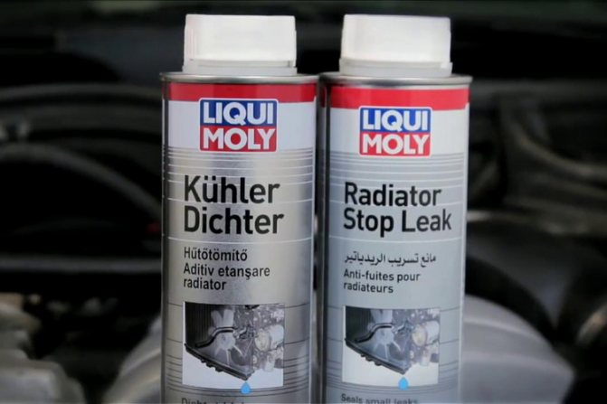 Первые заливают в горловину радиатора, где они полимеризуются при контакте с воздухом и образуют гелеобразную пленку, закрывающую трещины.