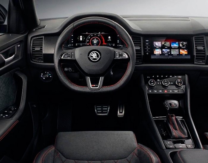 Несмотря на то, что Kodiaq по своим габаритам совсем немного отличается от своего ближайшего «соседа» по рейтингу (Sorento Prime), салон нового кроссовера не кажется таким уж просторным, несмотря даже на наличие третьего ряда сидений. На нем вполне комфортно будет детям и даже подросткам, но людям среднего роста ехать на «галерке» не совсем удобно. Зато на втором ряду пассажир может немного откинуть спинку сиденья, что в дальней дороге вполне уместно. Кроме откидного столика (очень удобен для планшета или ноутбука) имеется целый арсенал розеток, включая USB и стандарт на 220 V.